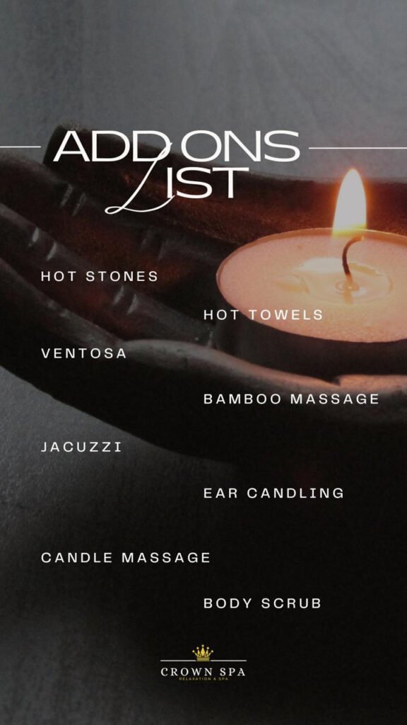 At Crown Spa services we are here to cater your every need. From soothing massages and revitalizing facials to indulgent body treatments and wellness therapies, every experience is crafted to leave you feeling refreshed and renewed. Explore our services and let us help you embrace the ultimate in relaxation and self-care.